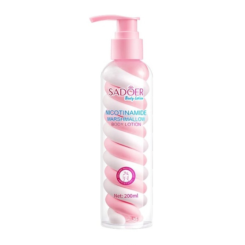 لوسیون بدن مارشمالو سادور، مناسب برای رفع لک و تیرگی های ایجاد شده بر روی پوست توسط UVA , UVB اشعه های فرابنفش نور خورشید بوده و نیز از تشکیل ملانین و لک های جدید جلوگیری می کند. به علاوه این لوسیون می تواند با قفل کردن عمیق رطوبت، بالانس طبیعی پوست را به آن برگرداند . این لوسیون با تاثیرگذاشتن بر خارجی ترین لایه پوست (اپیدرم) یعنی لایه ای که در تماس مداوم با دنیای اطراف است و اجسام و سطوح مختلف با آن اصطکاک ایجاد می کنند و مملو از سلول های مرده و فاقد هسته و اندامک یاخته ای (اُرگانل) است، پوست را روشن تر می کند. غنی شده با عصاره گل رز چری،پودر مروارید و آلوئه ورا و نیاسین آمید (B3) است. لوسیون بدن نیکوتینامید سادور به مرطوب شدن پوست کمک نموده و با بافت سبک و جذب سریعی که دارد به اعماق پوست نفوذ می کند و برای مدت زمان طولانی پوست را مرطوب نگه می دارد. بافت این لوسیون به حال دوفاز ژل و کرم است. ژل شفاف و کرم در دو رنگ صورتی و سبزآبی که با طرحی جذاب به شکل مارشمالو بسته بندی شده است. لوسیون مرطوب کننده بدن سادور خشکی و زبری پوست را برطرف و پوست را صاف و یکدست می کند. نیکوتین آمید موجود در لوسیون فواید بی شماری برای پوست شما به همراه دارد. از آن جمله می توان به تامین رطوبت پوست، کنترل ترشح چربی، تقویت کلاژن سازی، تقویت و افزایش استحکام بافت پوست، کاهش التهاب و قرمزی پوست و… نام برد. همچنین به درمان پوست مرغی کمک می کند و پوست را صاف و یکدست ،نرم و لطیف می کند. نحوه استفاده: به از حمام به صورت یکنواخت مقداری از لوسیون را روی پوست پخش کنید و ماساژ دهید تا جذب شود.